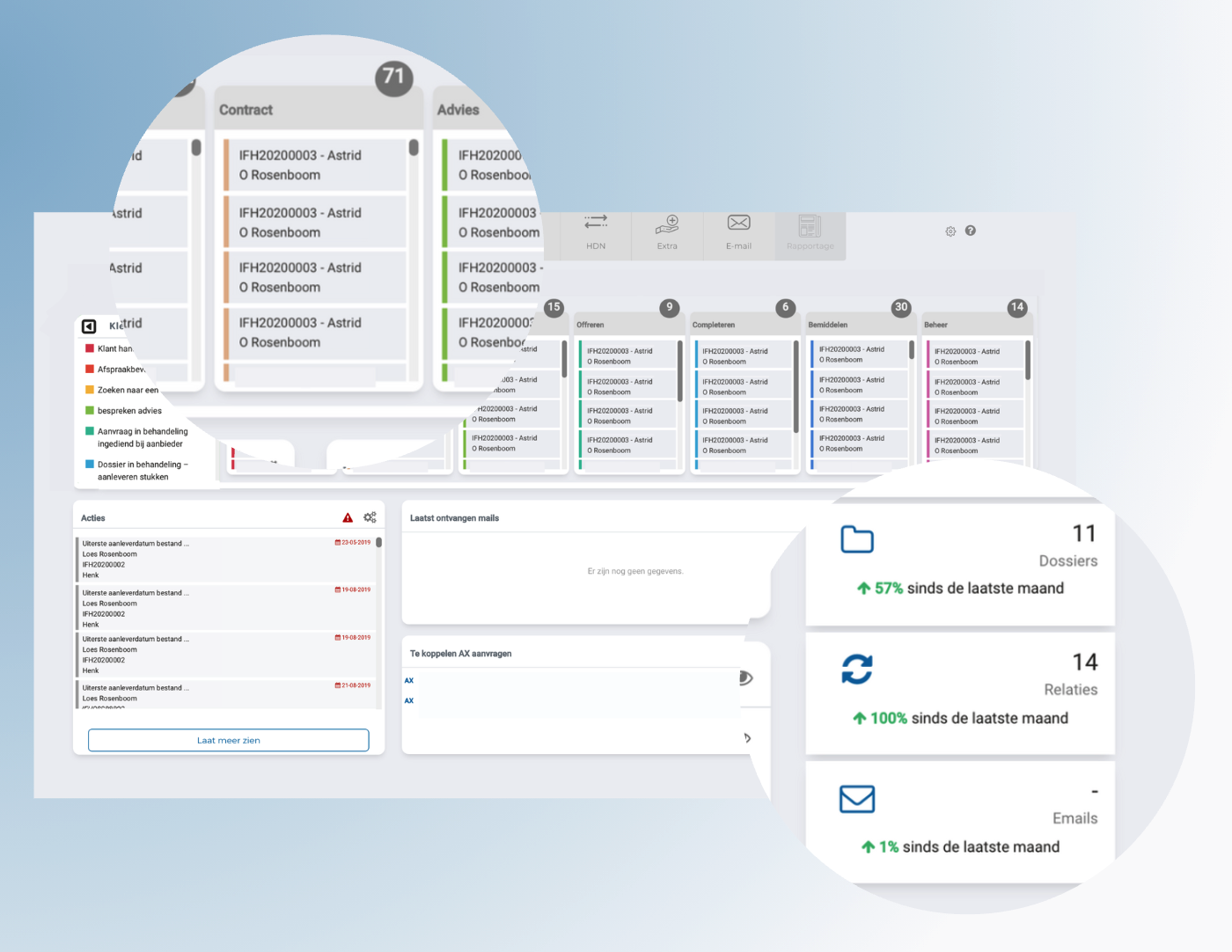 In de praktijk worden processen zoals hypotheek en AOV bemiddeling, met intelliFlow gemiddeld 50% en vaak zelfs meer versneld. Door kortere doorlooptijden, minder handmatige handelingen en directe ketenafstemming ontstaat meer grip op werkvoorraden én ruimte voor focus op kwaliteit en klantwaarde. Zo maakt intelliFlow complexe workflows niet alleen werkbaar, maar structureel eenvoudiger en sneller.
